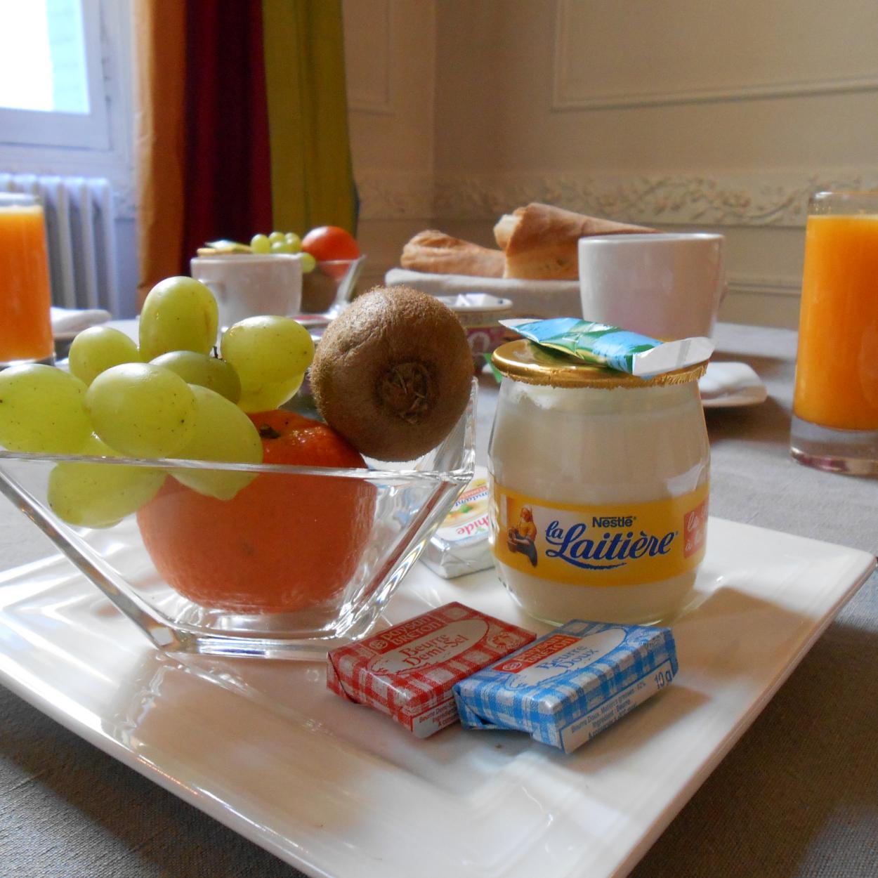 Un petit-déjeuner continental complet est servi tous les matins dans la salle des petit-déjeuner ou dans notre jardin si le temps le permet.